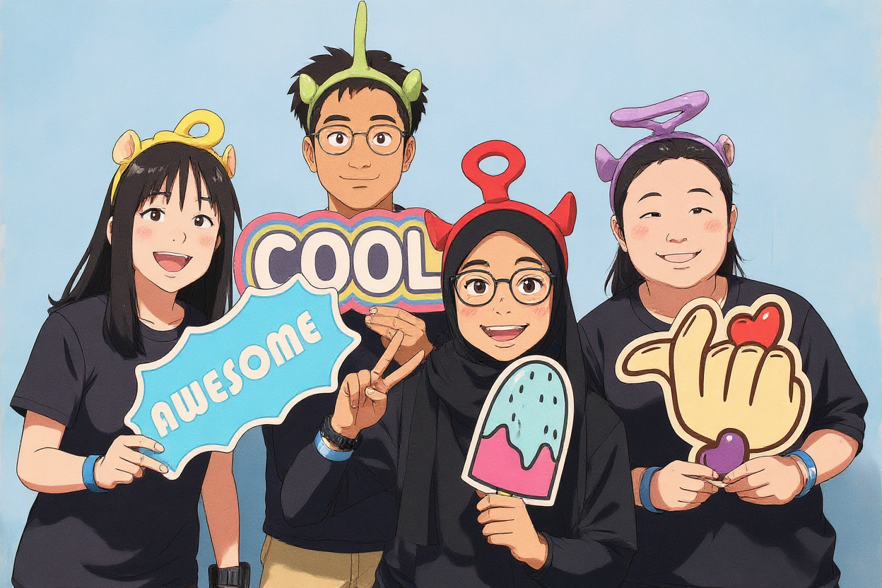 Step up to the booth, grab some props, and gather your friends for a fun photo. Strike your best pose in front of the camera, and our AI will instantly transform your picture into a vibrant cartoon-style artwork.