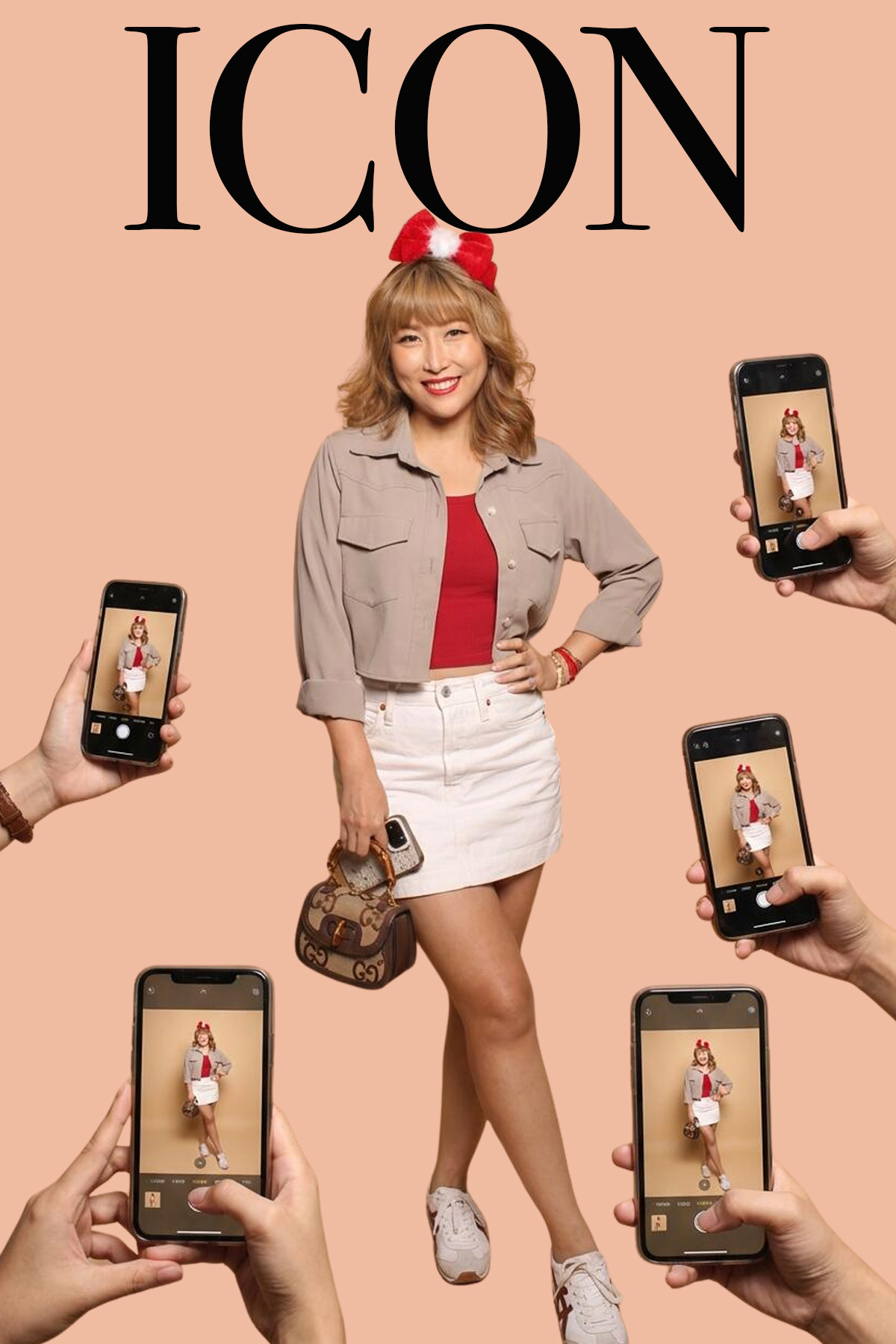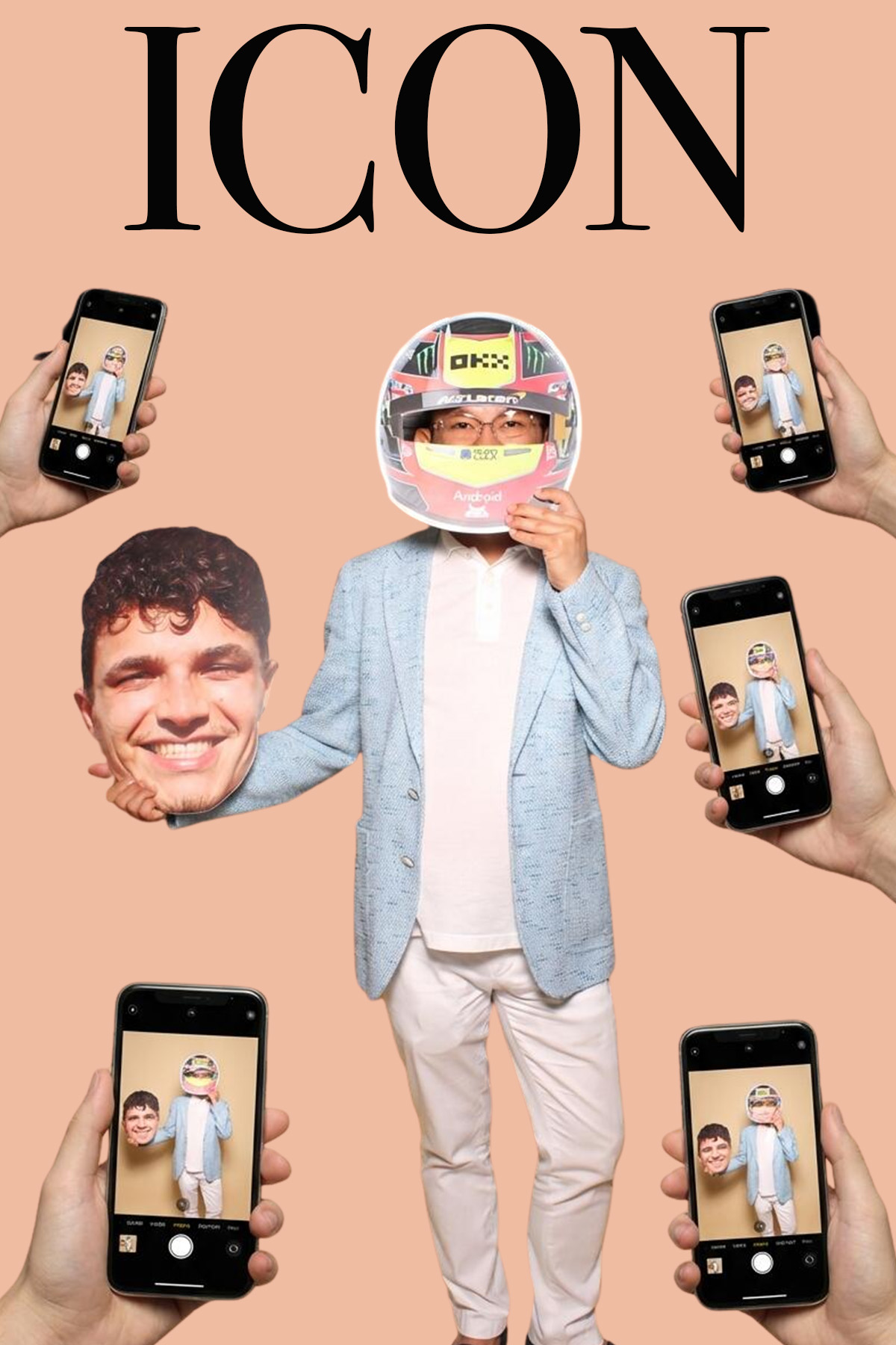Our ICON-Style Photo Booth transforms your photo into a high-end magazine cover moment. Inspired by fashion editorials and celebrity cover shoots, guests are placed front and center against a clean luxury backdrop with bold “ICON” masthead styling — surrounded by paparazzi-style phone captures for that viral, main-character energy.