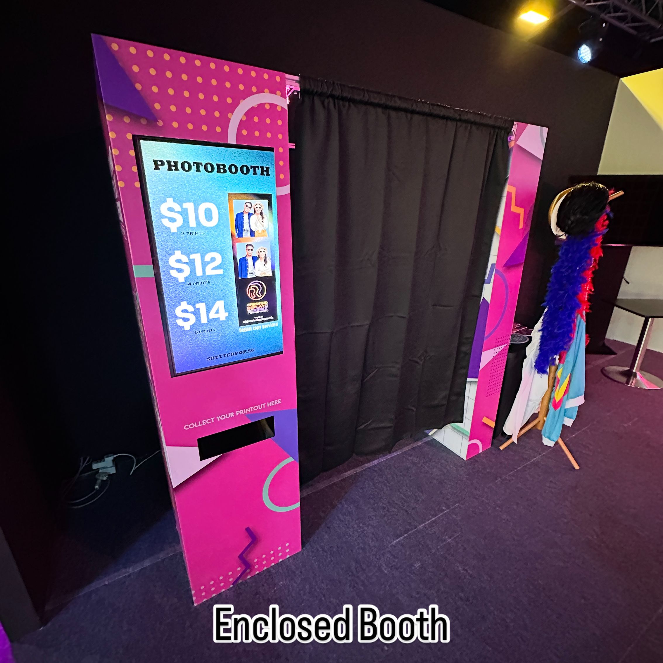 Experience the nostalgia of a classic arcade with our Walk-In Photobooth. Perfect for Singapore weddings and parties where guests might feel a bit camera-shy, this enclosed setup offers a private space to let loose and be silly. Simply grab some props and enter our enclosed walk-in photo booth, where you will see a live view monitor available to help you frame your poses perfectly before the flash goes off.